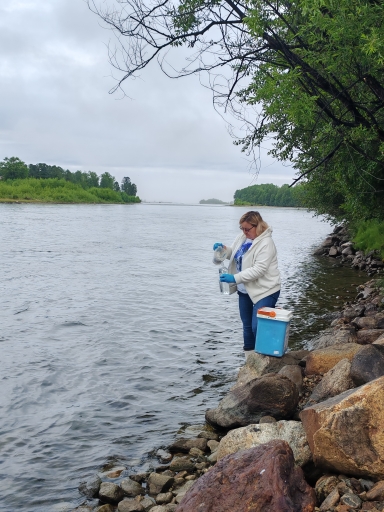 На 7 станциях выполнен отбор проб поверхностных вод (0-0.5 м), донных осадков и гидробионтов (моллюски, амфиподы) для последующего определения методами газовой хромато-масс-спектрометрии (ГХ-МС) стойких органических загрязнителей (СОЗ), хлорфенолов, парабенов и некоторых лекарственных препаратов. Собраны 3 сетных пробы в местах цветения воды, вызванного цианобактериями.
