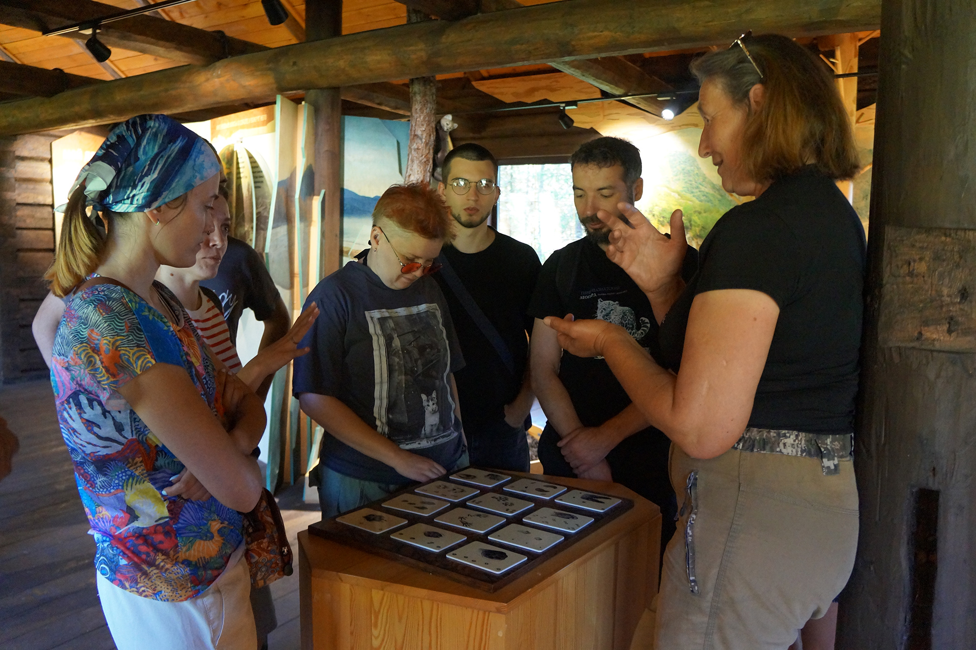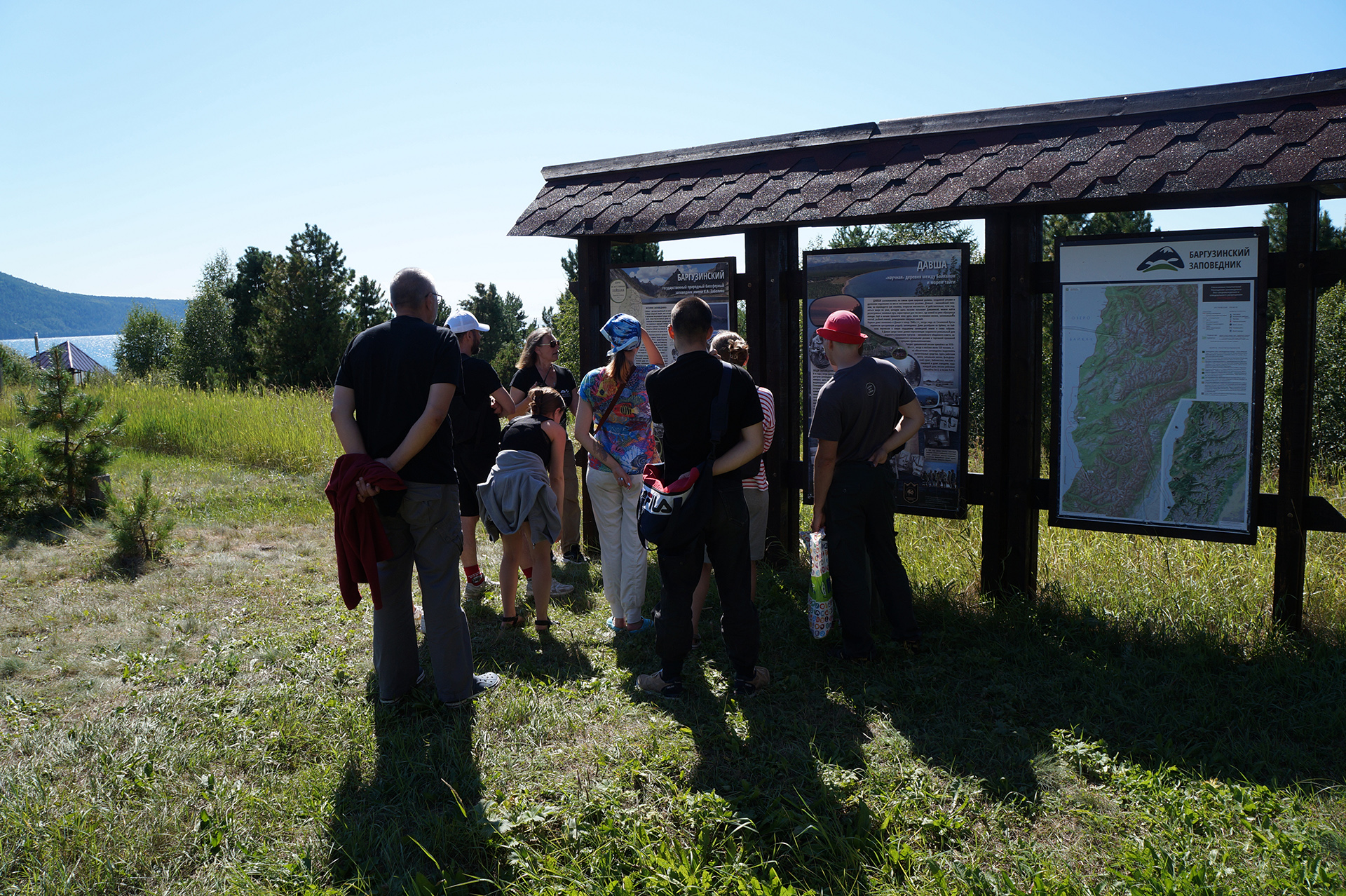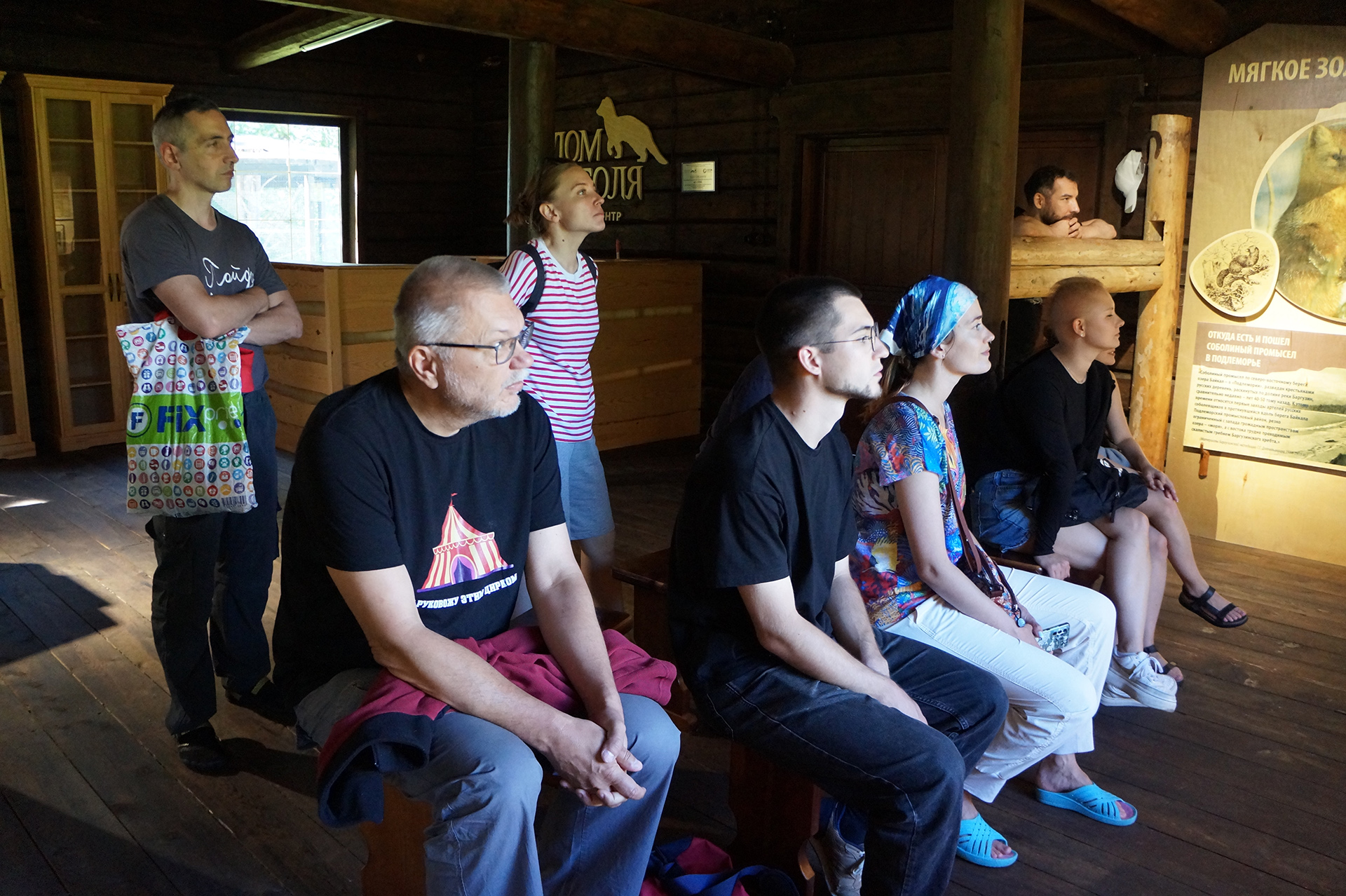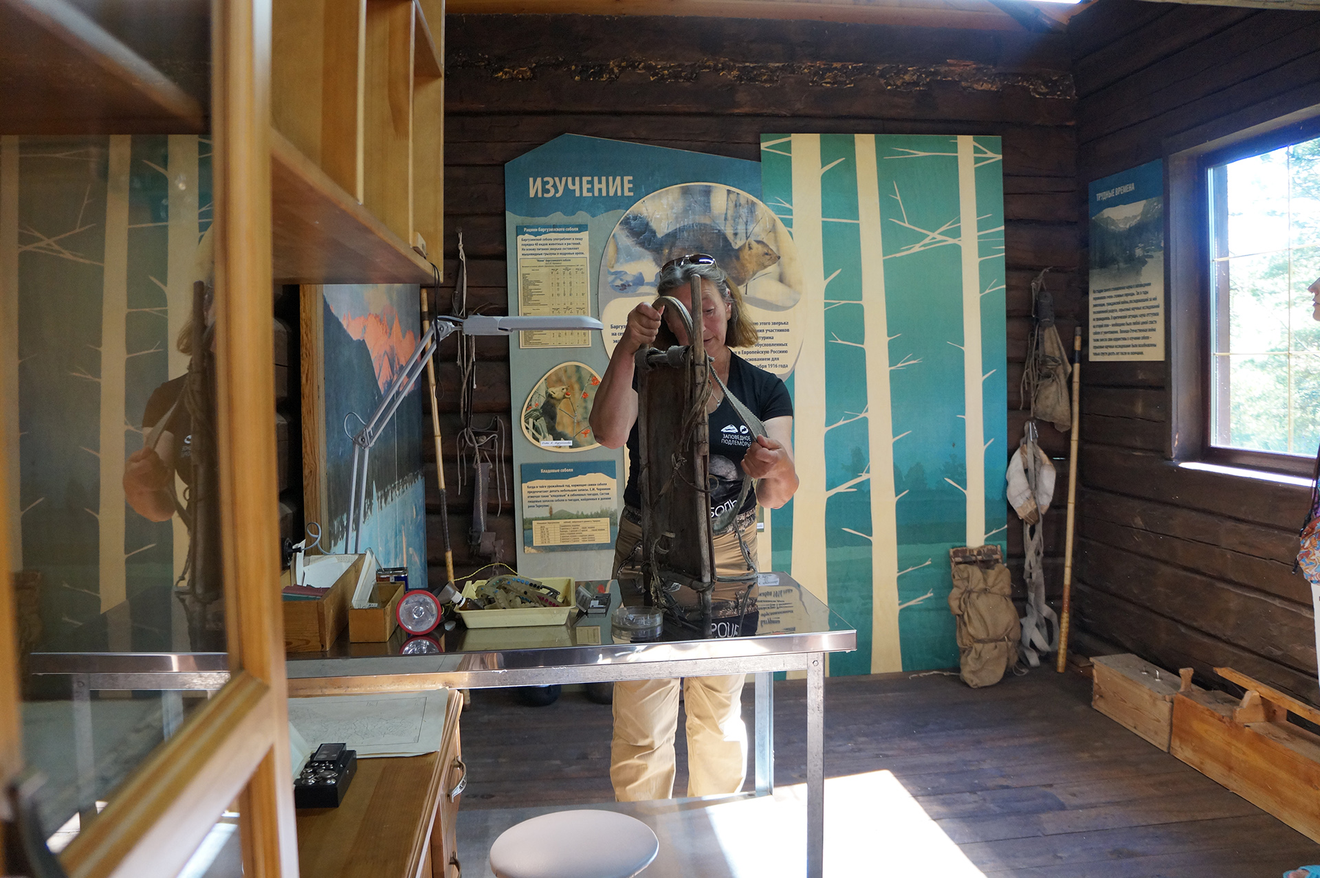 После обеда группа посетила музей природы и визит-центр «Дом Соболя» в поселке Давша. Участники ознакомились с биоразнообразием региона, экологией соболя (Martes zibellina) и проблемами сохранения байкальской фауны. На берегу озера с помощью скребка и сачка были собраны пробы амфипод.