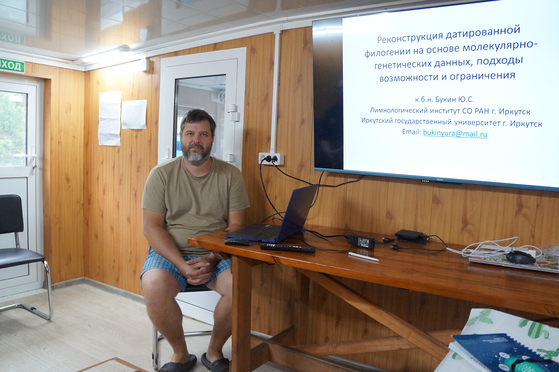 Ю.С. Букин выступил с лекцией "Реконструкция датированной филогении на основе молекулярно-генетических данных, подходы, возможности и ограничения". Лектор подробно рассказал о методах молекулярных часов и байесовских подходах (BEAST). В качестве примеров были приведены реконструкции филогений байкальских видов. Букин подчеркнул важность учета неопределенностей в филогенетических исследованиях.