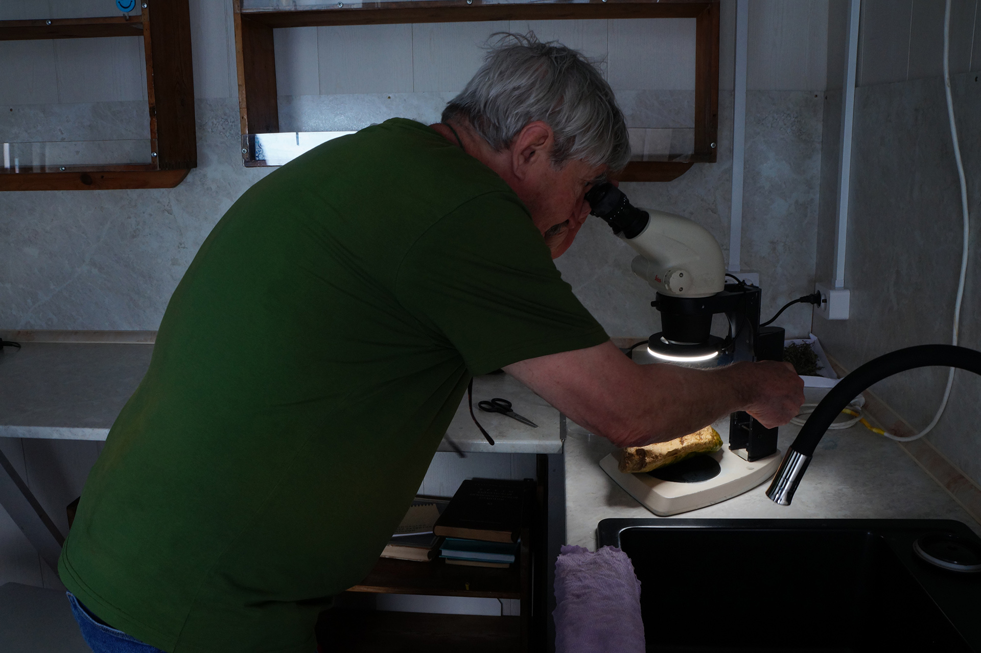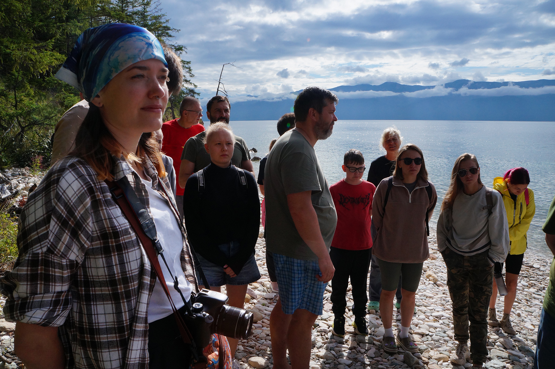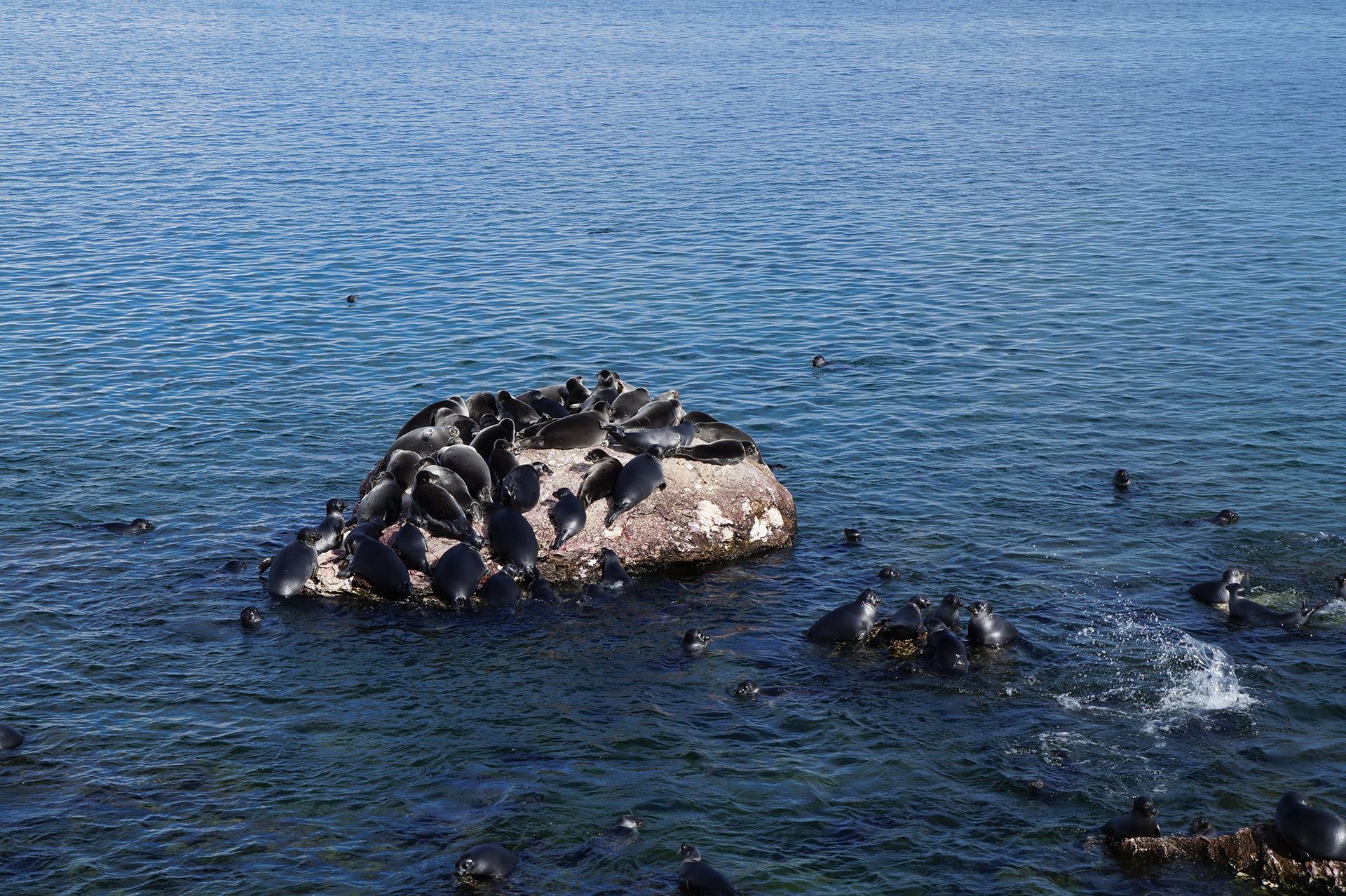 Утром группа совершила исследовательский поход по острову Тонкий (53.856551, 108.710976) в архипелаге Ушканьи острова. Участники наблюдали за лежбищем байкальских нерп (Phoca sibirica), изучая их поведение в естественной среде обитания. На берегу в литорали были собраны образцы мшанок (Bryozoa), предположительно представляющих редкий неописанный вид, что вызвало оживленные обсуждения.