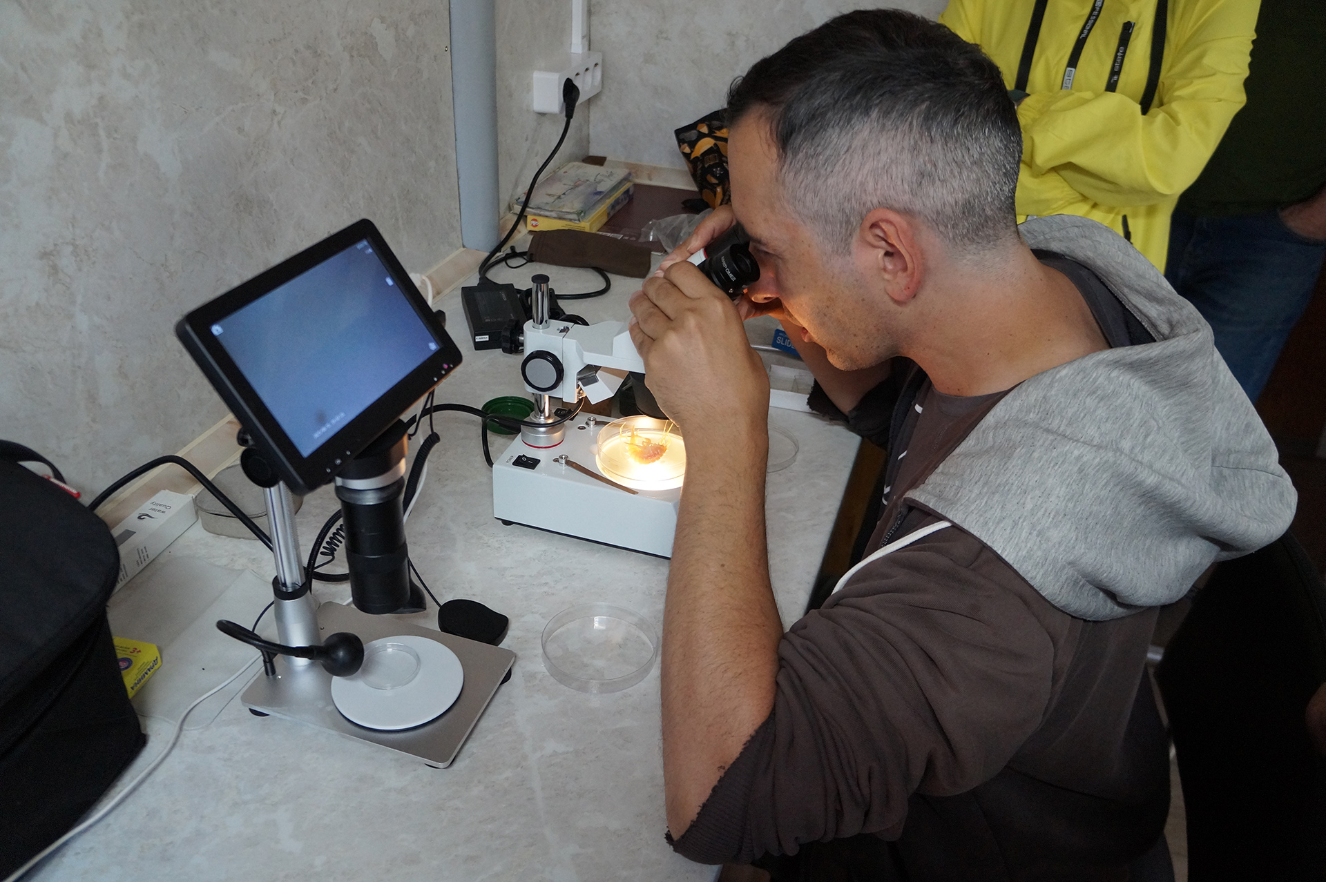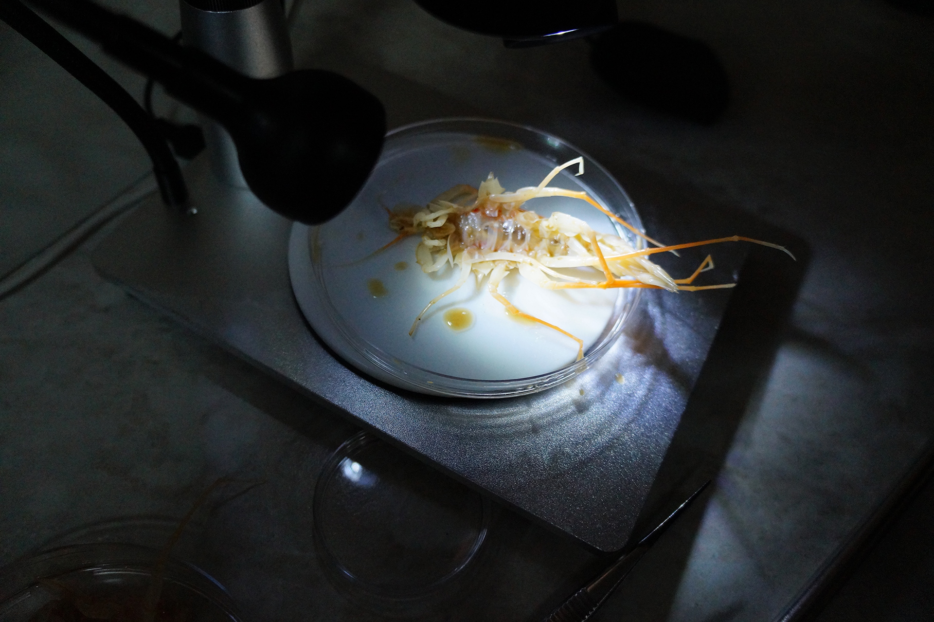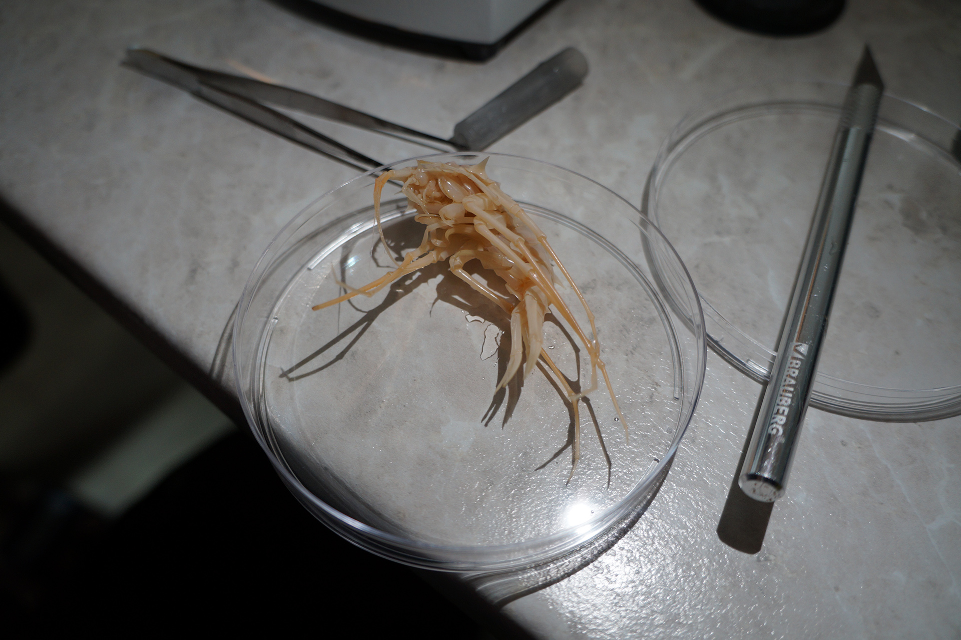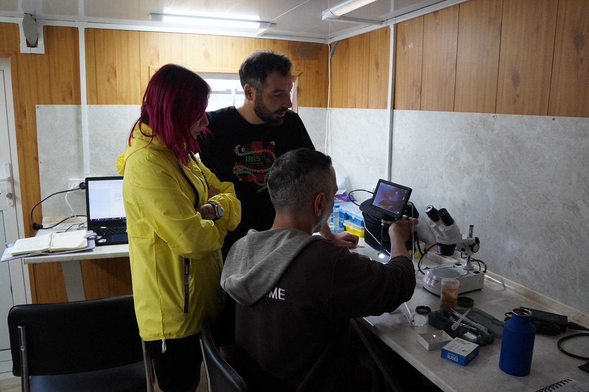 После лекции группа встретила научно-исследовательское судно (НИС) "Верещагин", с которого было совершено глубоководное траление с глубины 790 м. Участники познакомились с глубоководной фауной, включая амфипод (Amphipoda), голомянок (Comephorus) и широколобок (Pelvicachromis). Н.С. Мюге представил обзор адаптаций глубоководных рыб к давлению и темноте, Д.Ю. Щербаков — функциональные приспособления амфипод к жизни на глубине, а М.В. Райко собрал образцы микроспоридий (Microsporidia). Участники смогли рассмотреть образцы под бинокуляром.