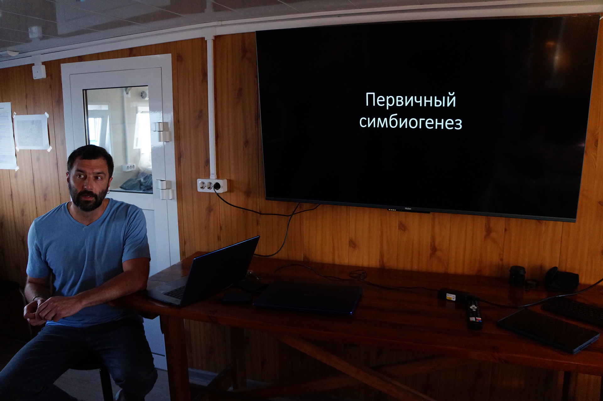 Завершился день лекцией Ю.Ю. Ильинского "Первичный симбиогенез". Лектор обсудил теории образования органелл и молекул (ДНК, РНК, пластиды), их эволюционное развитие, роль симбиоза в происхождении эукариот и современные доказательства эндосимбиотической теории.